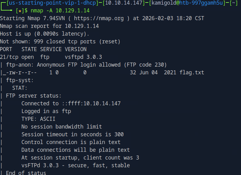 Started up our machine got IP 10.129.1.14 and ran nmap