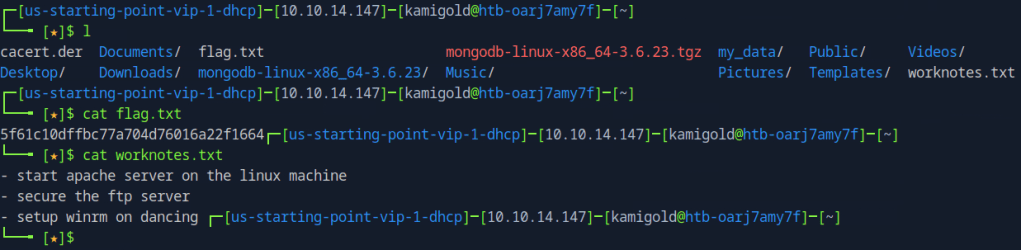 Enumerated the directories and found a flag.txt and worknotes.txt.