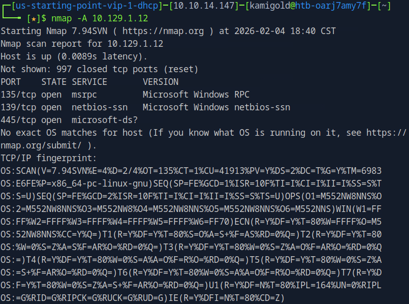 Task 3 – What is the service name for port 445 that came up in our Nmap scan?
