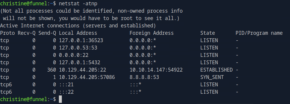 Ran netstat on the machine.