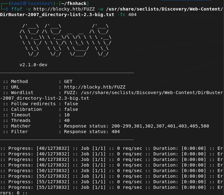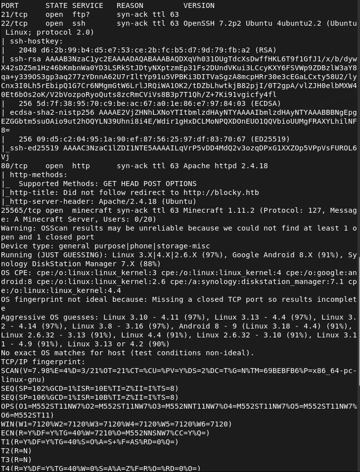 Tried navigating to the webserver but have to add blocky.htb to /etc/hosts. Rest of nmap finished.