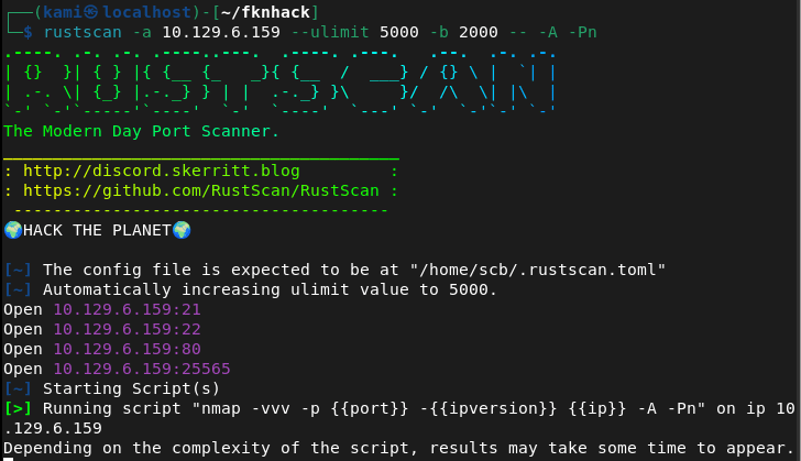 Scanned the machine with rustscan.