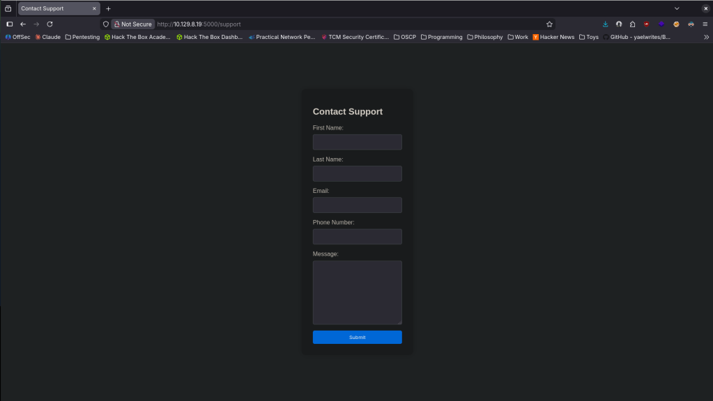This looks vulnerable to XSS. Something that would be interesting to find is the proper Cookie that gives us additional access, specifically to /dashboard that feroxbuster found. Currently this is catching our header though. Popped up an http listener and after some testing we were able to get the admin cookie.
