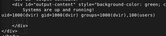 It looks like we can generate reports from this page. When running this it tells us the ‘Systems are up and running!’ This is likely running some command on the backend. In the input field I won’t be able to put a command. Confirmed with ‘id’.