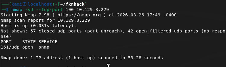 nmap -sU –top-port 100 10.129.8.229