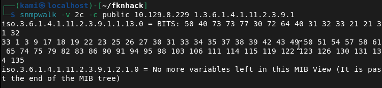 snmpwalk -v 2c -c public 10.129.8.229 1.3.6.1.4.1.11.2.3.9.1
