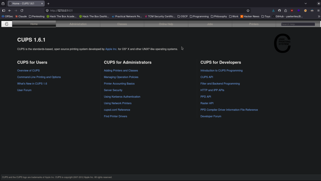 Checking out the webserver there is a CUPS 1.6.1 page.