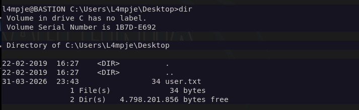 5 – SSH access and user flag Authenticated via SSH as L4mpje using the cracked password and retrieved user.txt.