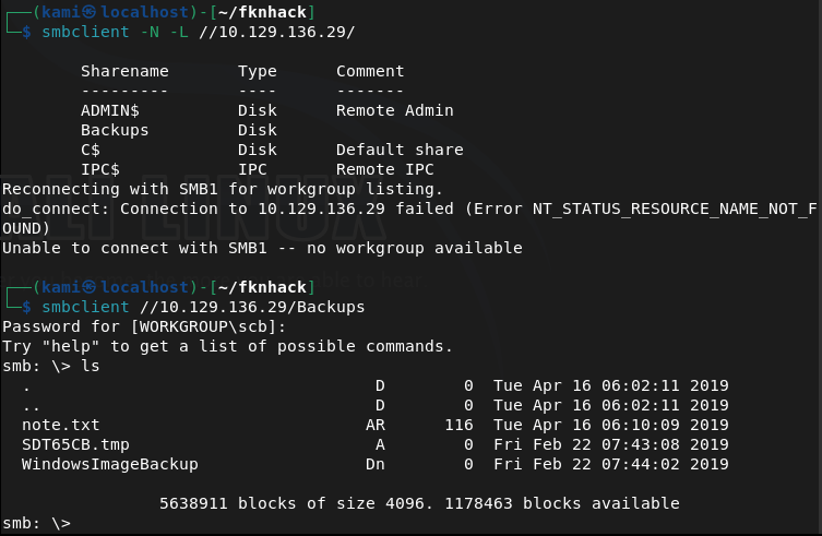 The smb ports look like low hanging fruits so let’s check those out. Looks like there is a Backups directory with some files. Downloaded those.
