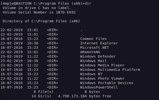 Overview: Bastion is an Easy level WIndows box which contains a VHD ( Virtual Hard Disk ) image from which credentials can be extracted. After logging in, the software MRemoteNG is found to be installed which stores passwords insecurely, and from which credentials can be extracted.