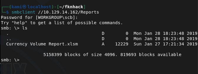 smbclient //10.129.14.162/Reports unzip ‘Currency Volume Report.xlsm’ strings vbaProject.bin
