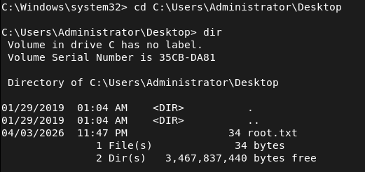 7 – Root Used impacket-psexec with the recovered Administrator credentials to get a SYSTEM shell and retrieve root.txt.