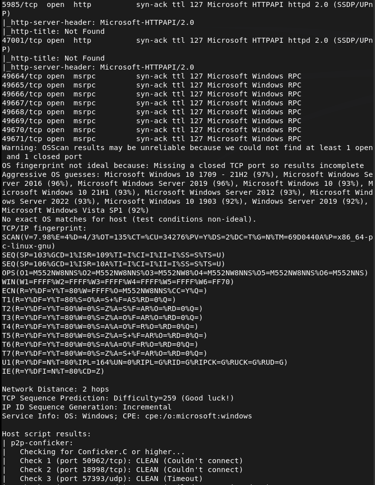 1 – Reconnaissance Ran RustScan and identified ports 135, 139, 445 (SMB), and 1433 (MSSQL). Checked SMB for anonymous access and found a readable Reports share.