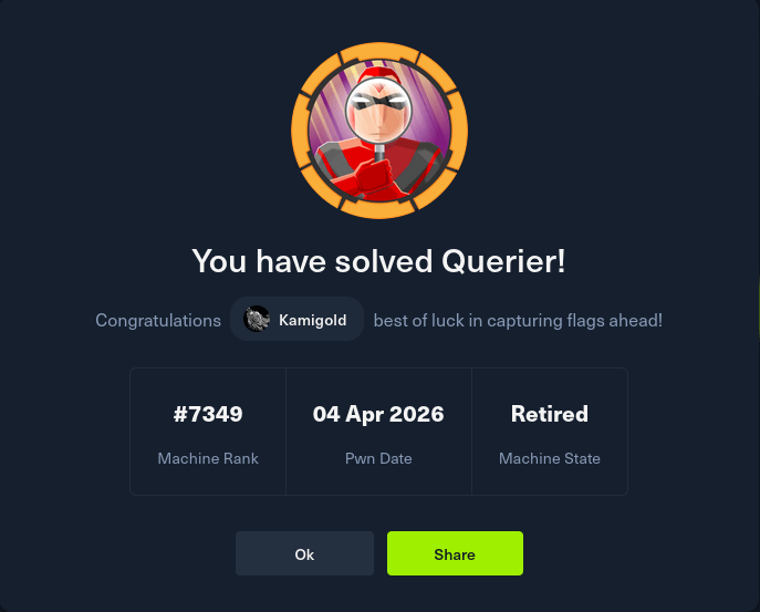 Link: https://app.hackthebox.com/machines/Querier?sort_by=created_at&sort_type=desc