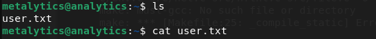Linpeas got us some credentials. metalytics:An4lytics_ds20223# Trying them on ssh.