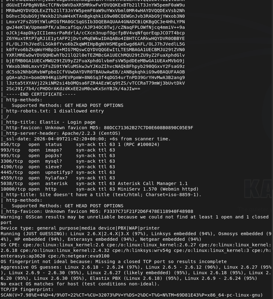 - Elastix LFI exposing system credentials – The Elastix version running on port 443 was vulnerable to a local file inclusion exploit that allowed reading sensitive files containing plaintext credentials. CMS and VoIP platforms must be patched and version information must not be disclosed publicly.