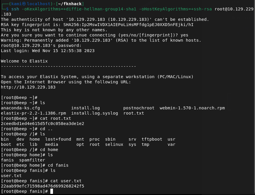 - Password reuse enabling direct root access – The same credentials recovered from the Elastix LFI worked for root SSH access, resulting in immediate full system compromise with no additional exploitation steps required. Password reuse across services is unacceptable and root SSH login must be disabled.