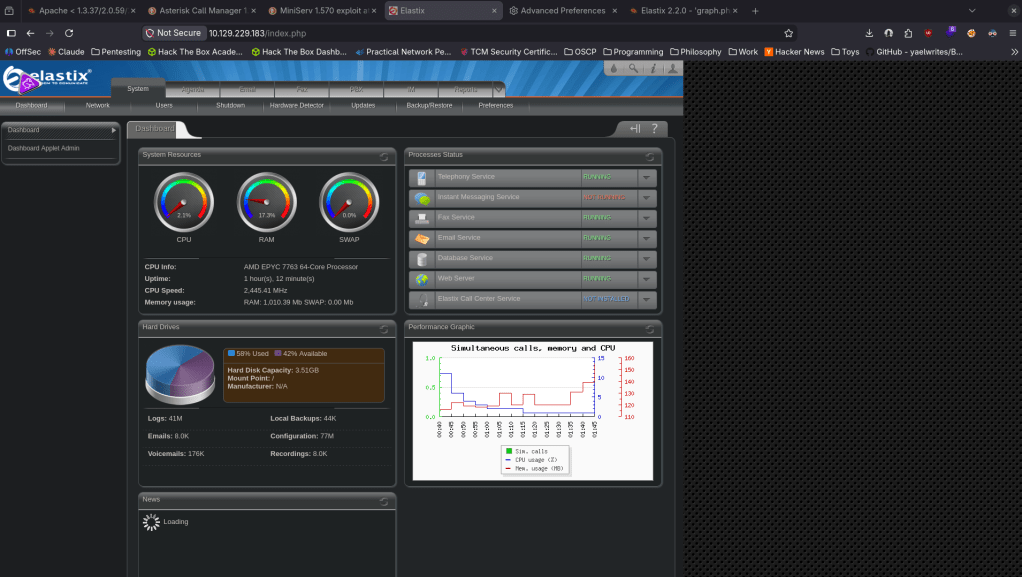 The next ports I’m unfamiliar with but Asterisk Call Manager 1.1 and MiniServ 1.570 (Webmin httpd) do look interesting.