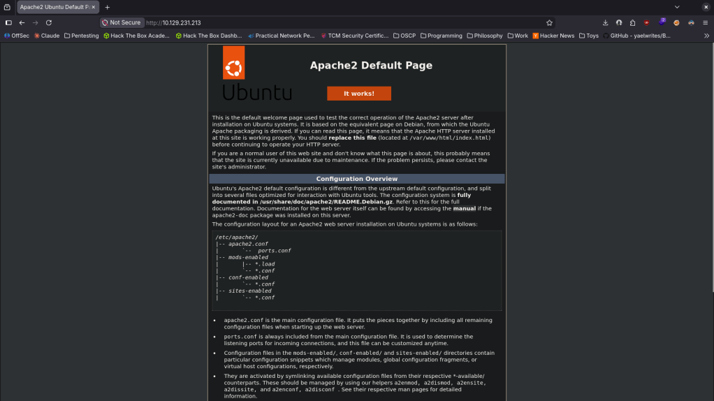 Navigated to the http port. It’s a default web page.