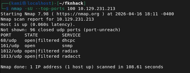 nmap -sU –top-ports 100 10.129.231.213