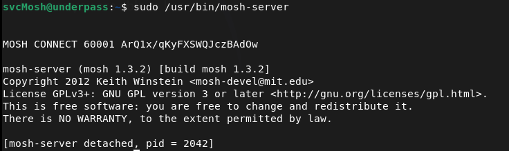 MOSH_KEY=ArQ1x/qKyFXSWQJczBAdOw mosh-client 10.129.231.213 60001