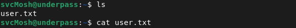 4 – SSH access and user flag Authenticated via SSH using the cracked credentials and retrieved user.txt.