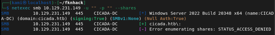 netexec smb 10.129.231.149 -u “” -p “” –shares