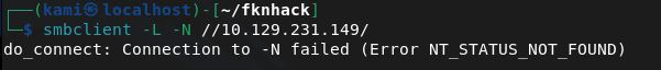 Didn’t get anything eventful back. Checking with Smbclient to confirm we can’t connect unauthenticated.