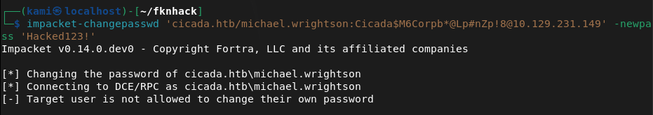 Evil-winrm partially connected but then disconnected. I bet I have to reset his password. I tried to reset his password but he actually isn’t able to.