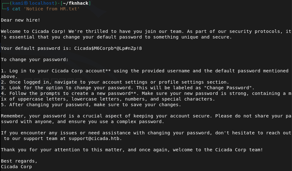 Downloaded that file. I’m gonna bet its a default password for a recently onboarded user. And it is lol Cicada$M6Corpb*@Lp#nZp!8.