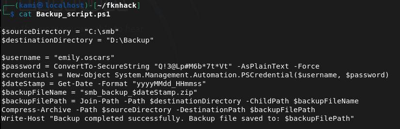 Credentials recovered: emily.oscars:Q!3@Lp#M6b*7t*Vt