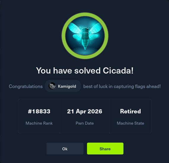 Overview: Cicada is an easy-difficult Windows machine that focuses on beginner Active Directory enumeration and exploitation. In this machine, players will enumerate the domain, identify users, navigate shares, uncover plaintext passwords stored in files, execute a password spray, and use the SeBackupPrivilege to achieve full system compromise.
