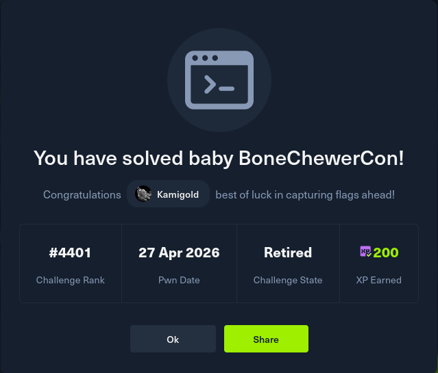 Challenge name: Baby BoneChewerCon