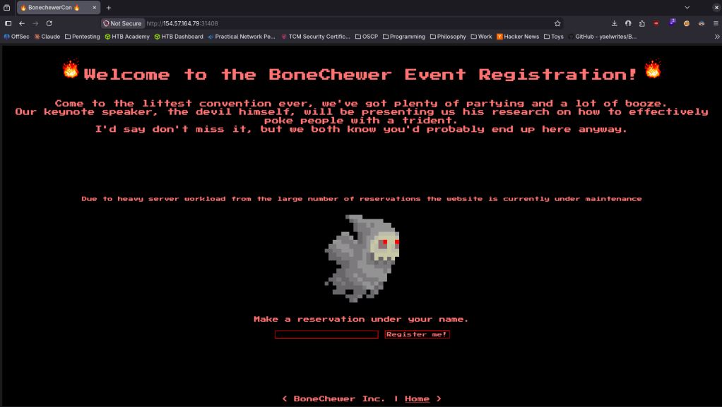 Challenge Scenario: Due to heavy workload for the upcoming baby BoneChewerCon event, the website is under maintenance and it errors out, but the debugger is still enabled in production!! I think the devil is enticing us to go and check out the secret key.
