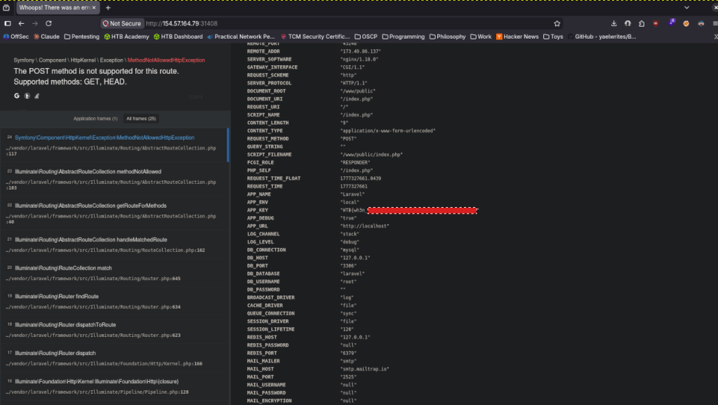 Scrolling down I found APP_KEY with the flag.