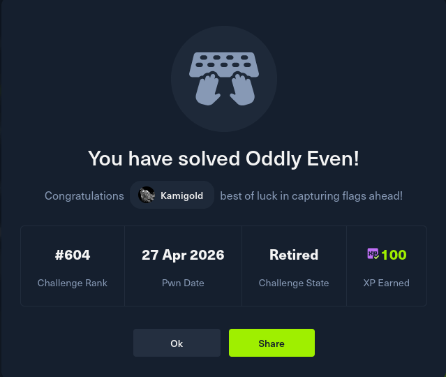Link: https://app.hackthebox.com/challenges/Oddly%2520Even?tab=play_challenge