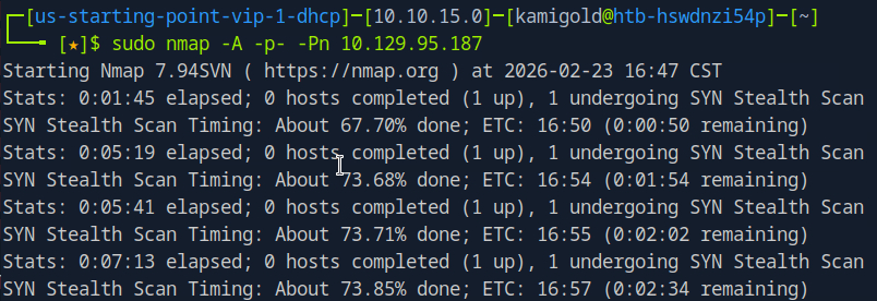 Scanned the machine with rust scan and running nmap switches against open ports.