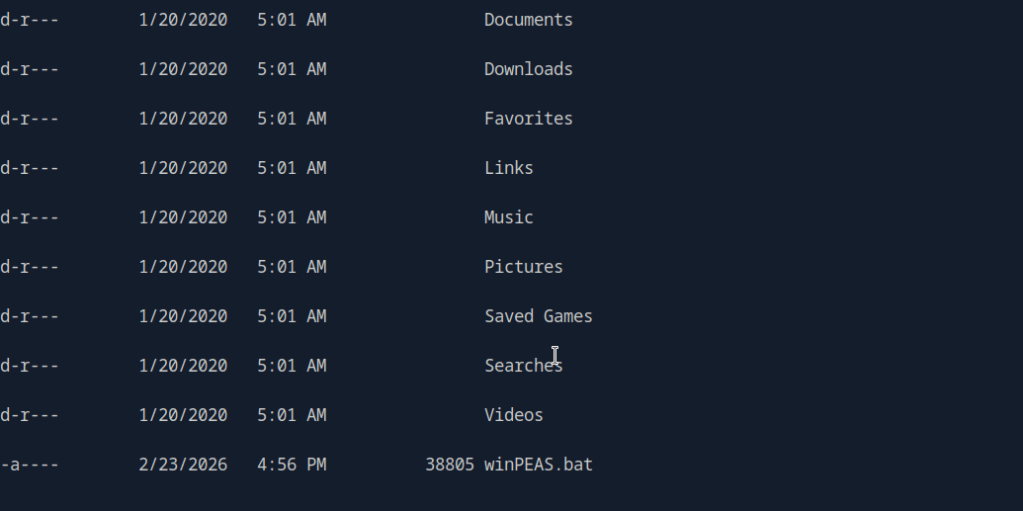 I tried running this and troubleshooting but for some reason it was not running at all. I also tried the .exe version of winPEAS, making sure they were executable, changed naming, changed the location of where I was downloading to and different transfer commands. As nothing worked I referred to the writeup and it did the exact same thing that I did using an .exe.